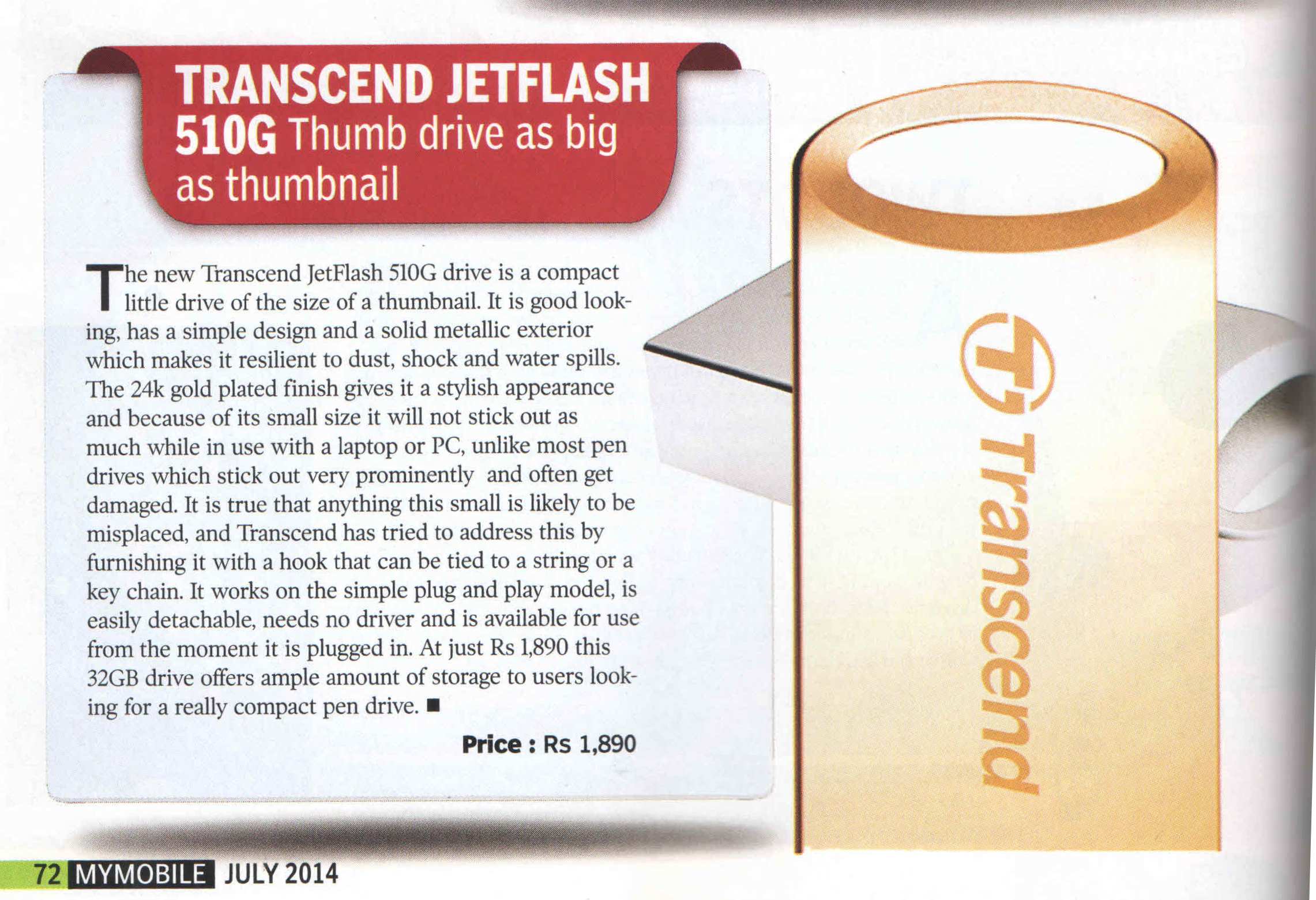 Headline : Transcend Jet Flash 510G Thumb drive as big as thumbnail
