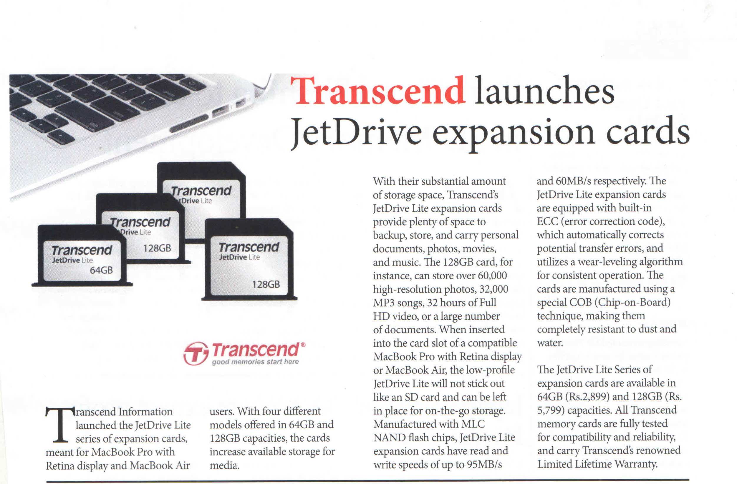 Headline : Transcend Launches JetDrive expansion cards