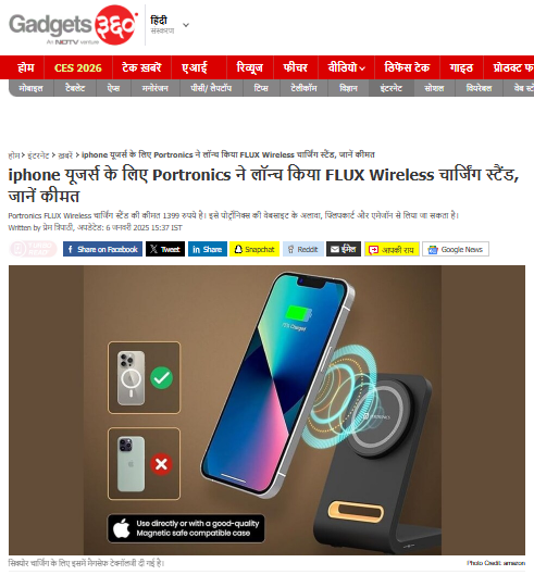 Headline : iphone यूजर्स के लिए Portronics ने लॉन्च किया FLUX Wireless चार्जिंग स्टैंड, जानें कीमत