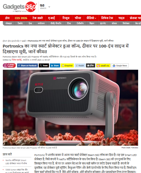 Headline : Portronics का नया स्मार्ट प्रोजेक्टर हुआ लॉन्च, दीवार पर 100-इंच साइज में दिखाएगा मूवी, जानें कीमत