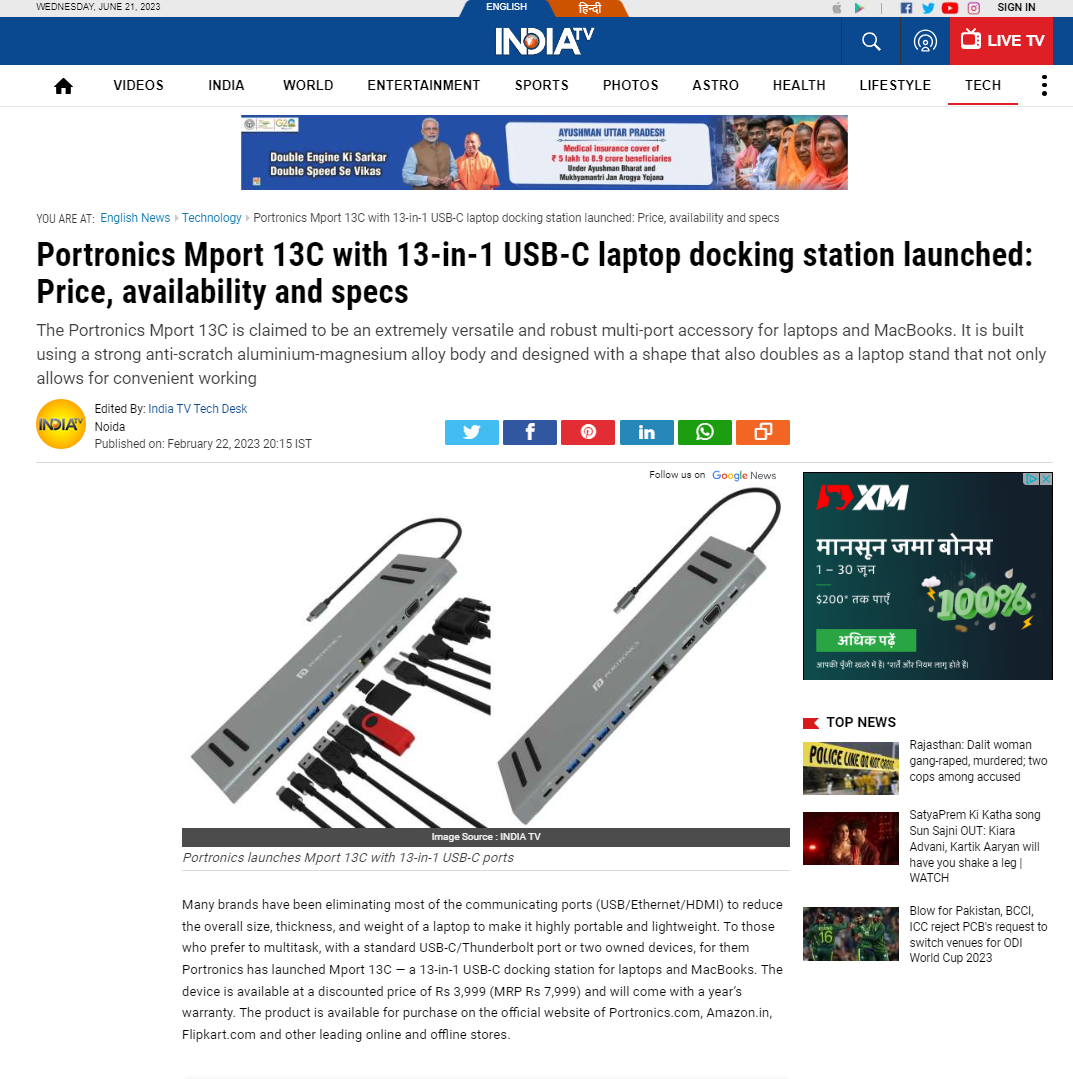 Headline : Portronics Mport 13C laptop docking station launched: Price, availability and specs