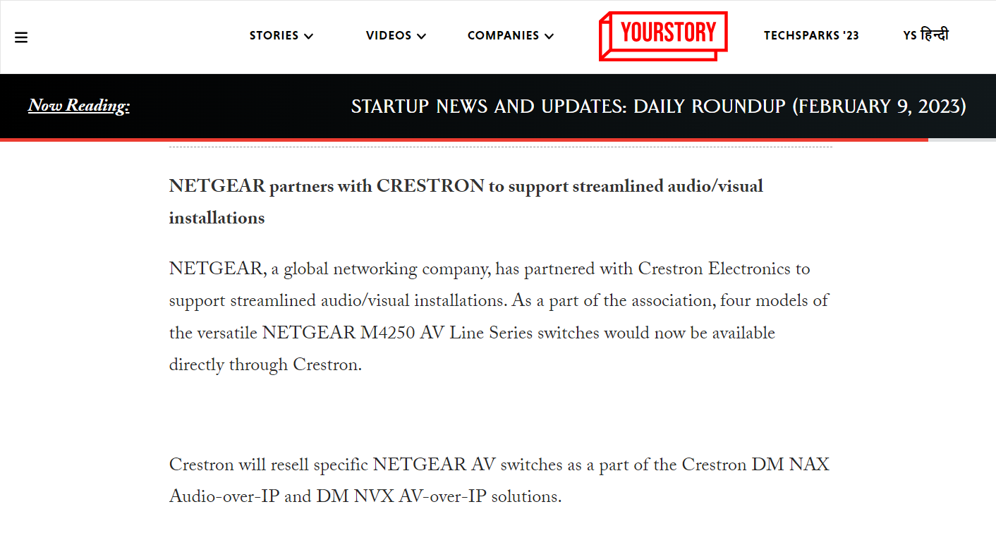 Headline : NETGEAR partners with CRESTRON to support streamlined audio/visual installations