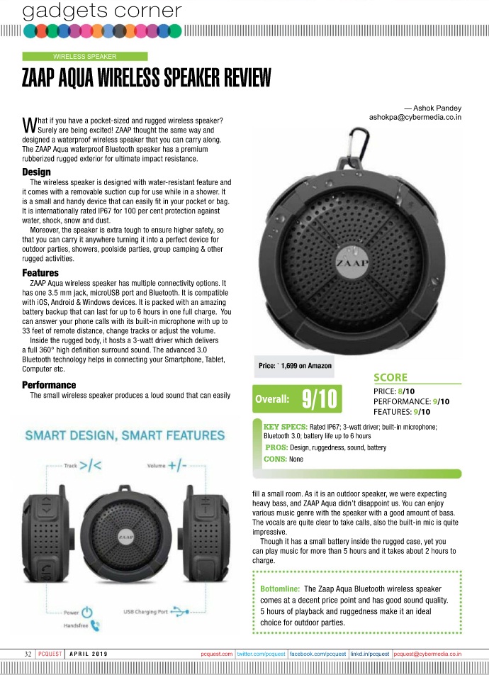 Headline : ZAAP Aqua Pro - A Bluetooth Speaker with 360-degree sound