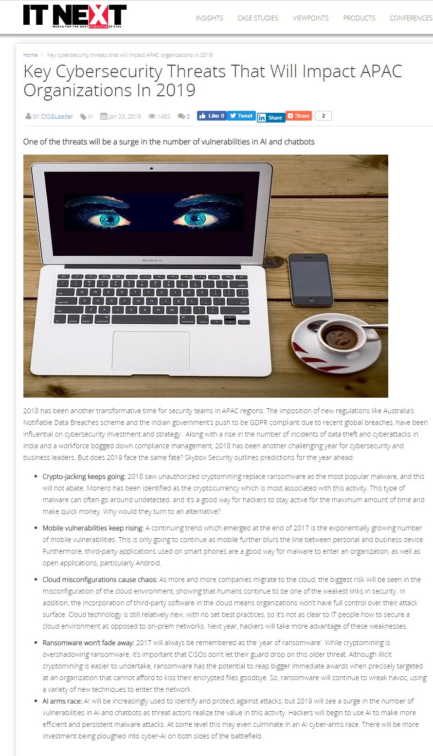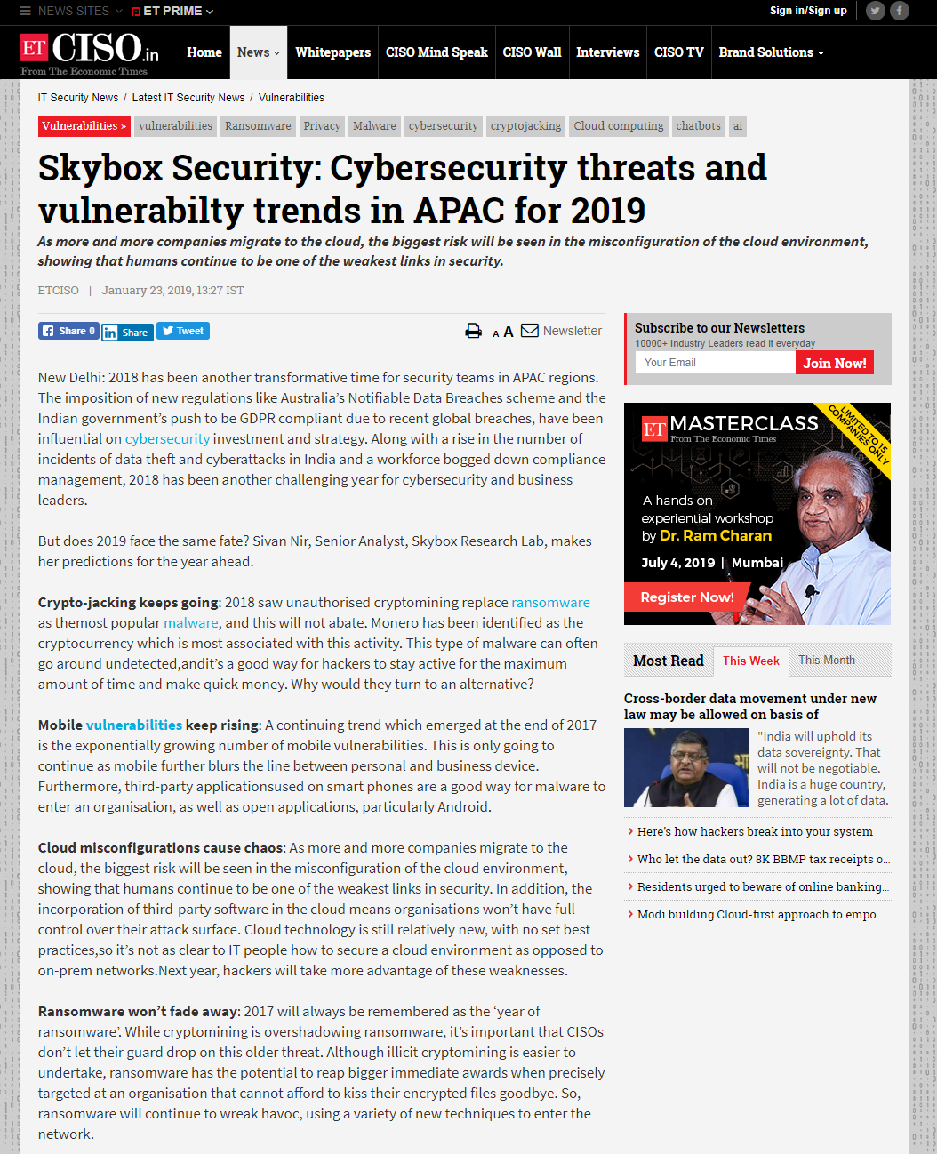 Headline : Skybox Security: Cybersecurity threats and vulnerabilty trends in APAC for 2019