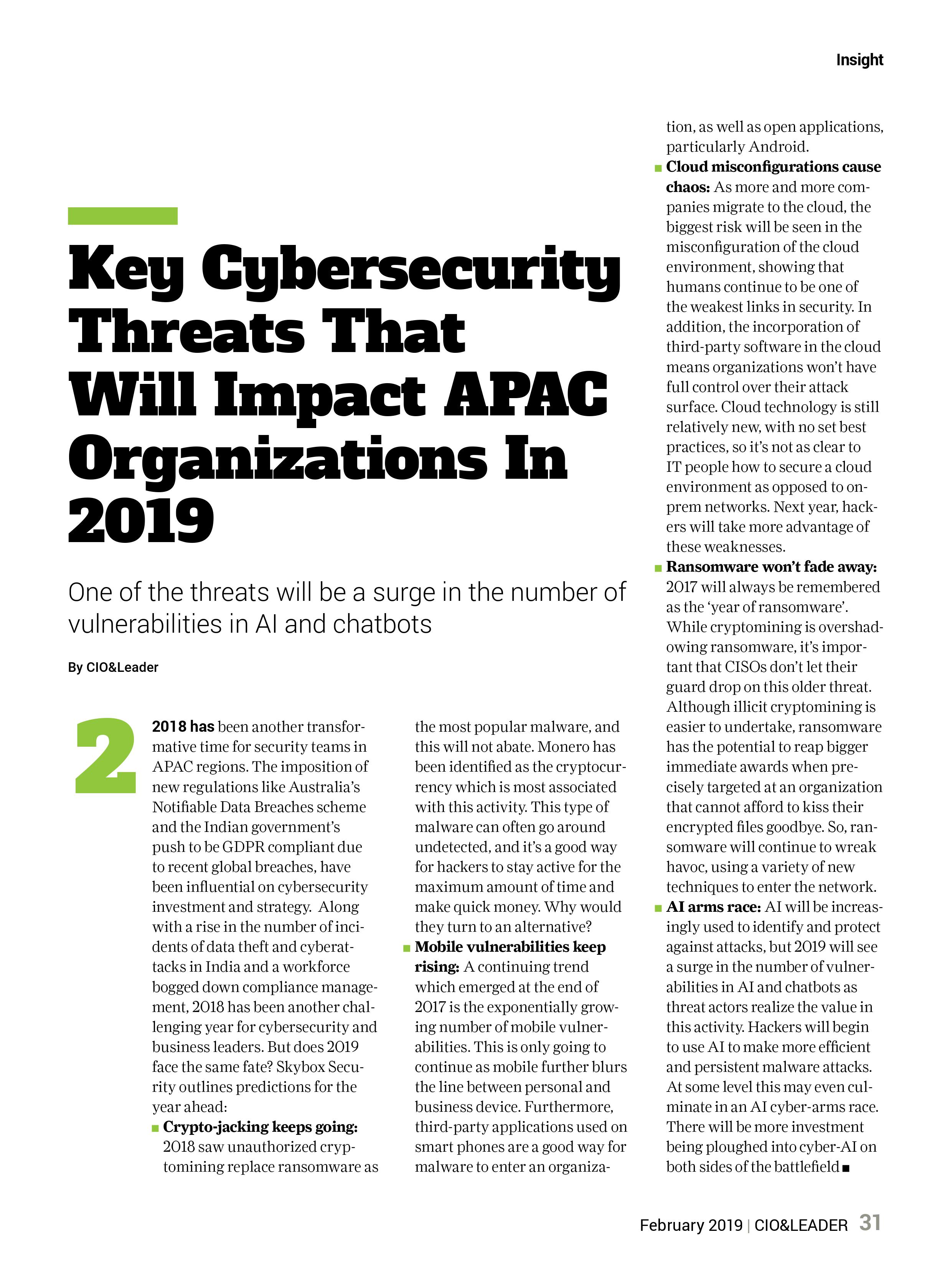 Headline : Key Cybersecurity Threats That Will Impact APAC Organizations In 2019