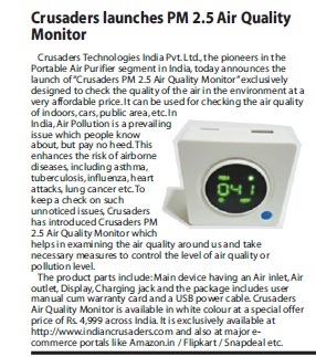 Headline : Crusaders launches PM 2.5 Air Quality Monitor