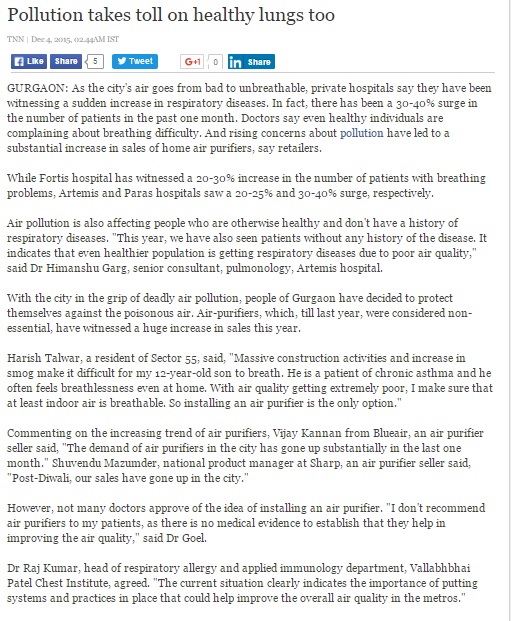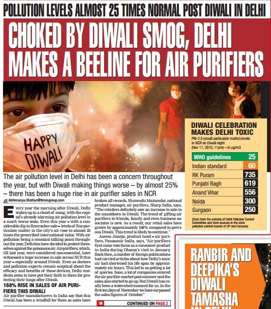 Headline : Chocked by Diwali smog, Delhi makes a Beeline for Air purifiers