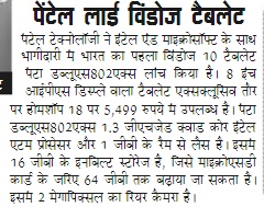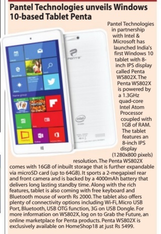 Headline : Pantel Technologies unveils windows 10-based Tablet Penta best re